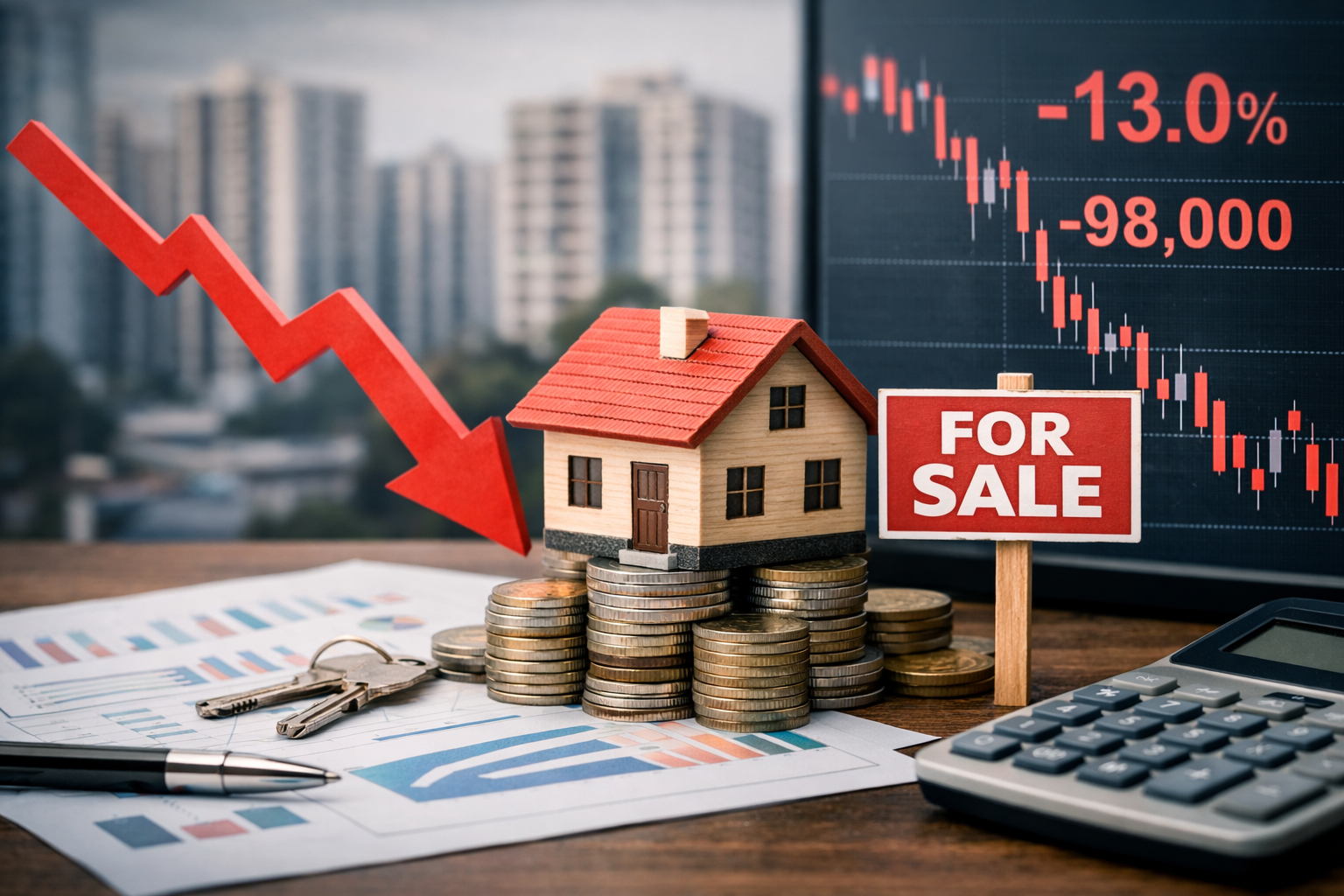 - Q1 2026 में housing sales घटकर ~98,000 units रह गई