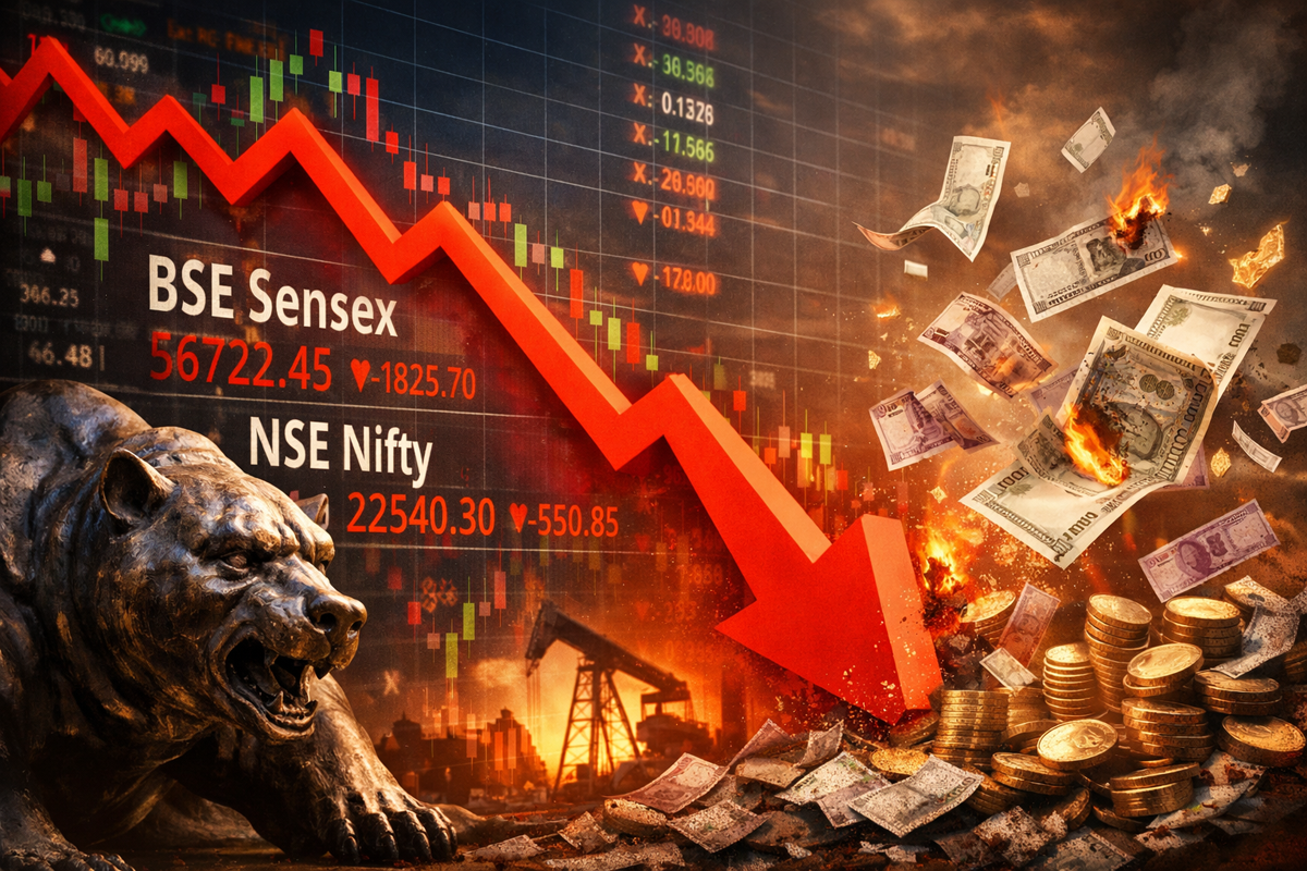BSE Sensex और Nifty 50 दोनों ही बड़ी गिरावट के साथ बंद हुए। इस अचानक आई गिरावट ने निवेशकों के बीच डर और अनिश्चितता बढ़ा दी है।