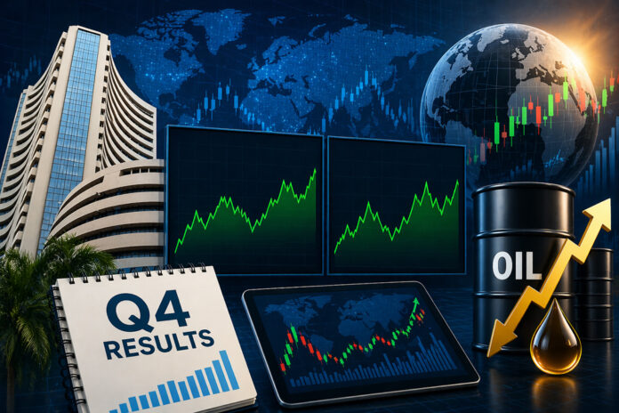Aaj market ko Q4 results, GIFT Nifty signals, oil prices aur global geopolitical developments drive kar rahe hain.